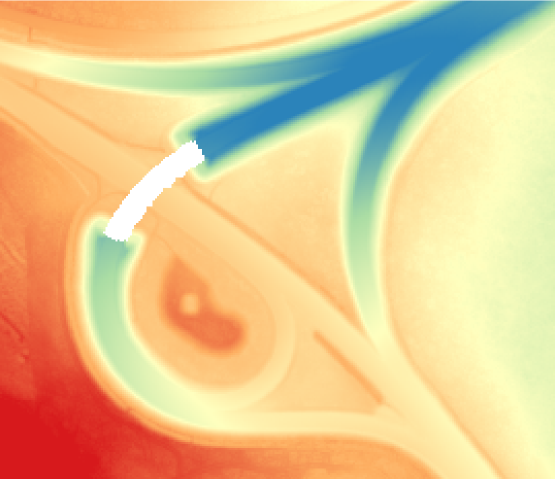 The dataset contains a flyover over a highway, which needs to be filled with proper values.