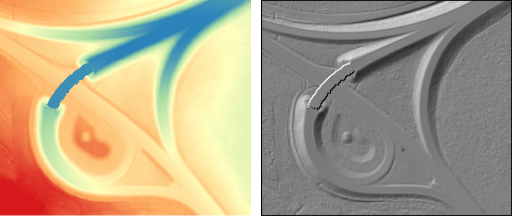 The data used in the following examples can be found in the $OPALS_ROOT/demo/ directory. As a prerequisite the data of (flyover.laz) are imported into an OPALS data manager and a raster DTM is calculated using the following commands: