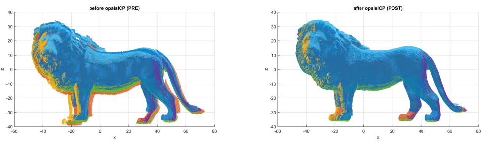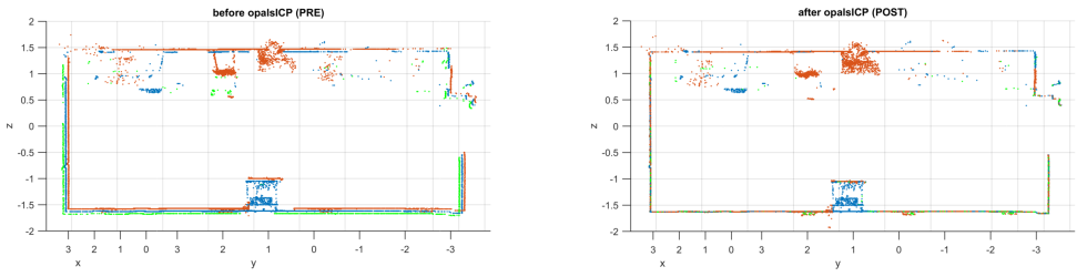 Figure 10: The orientation before and after running opalsICP.