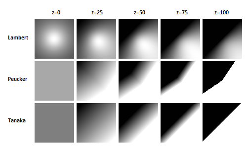 Possible values: tanaka .... use algorithm according to Tanaka lambert ... lambertian reflection (proportional to cosine of incident angle) peucker ... lambertian reflection (approximation according to Peucker)Method to be used for shading the model.