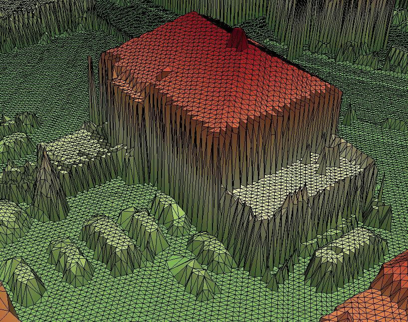 ... results in the demo data set strip11.laz being triangulated, and the TIN topology being exported to file strip11.wrl . Using ParaView, the following visualization can be generated. For numeric reasons, parameter oFilter has been used to reduce the planar coordinates.