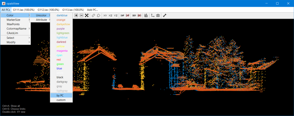 The main purpose of this module is the visualization of point clouds in the ODM format. The main features of opalsView are: