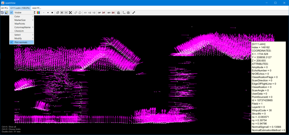 Now opalsView can be called to visualize the point cloud together with the normal vectors: