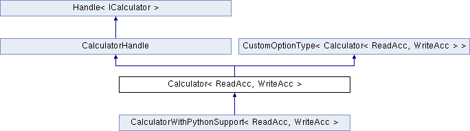 Inheritance diagram for Calculator< ReadAcc, WriteAcc >:Public Member Functions | |