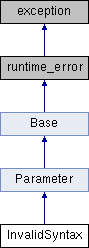 Inheritance diagram for InvalidSyntax:Public Member Functions | |