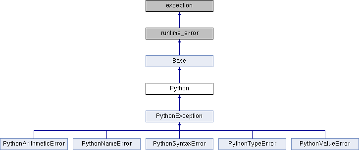 An error occurred during a call to a Python interpreter. Reflects Python's built-in class exceptions.BaseException. More...