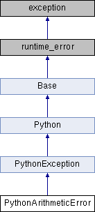Inheritance diagram for PythonArithmeticError:Public Member Functions | |