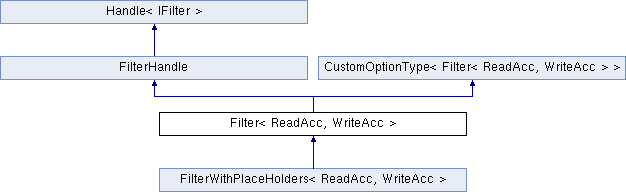 Inheritance diagram for Filter< ReadAcc, WriteAcc >:Public Member Functions | |