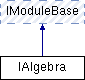 Inheritance diagram for IAlgebra:Static Public Member Functions | |