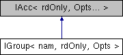 Inheritance diagram for IGroup< nam, rdOnly, Opts >:Public Types | |