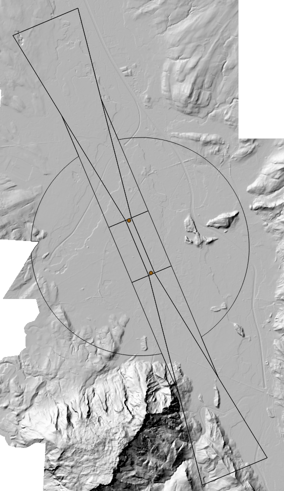 The first part of the modeling is the preparation of the points that are being used in the safezone planes. starting with the two points that corresponds to the runway, we use height from the points or use height information from the DTM. for this purpose we use opalsImport to get the points. If we decide to use DTM as points' heights then we use Module AddInfo to add height information from grid file (DTM) into the ODM z component