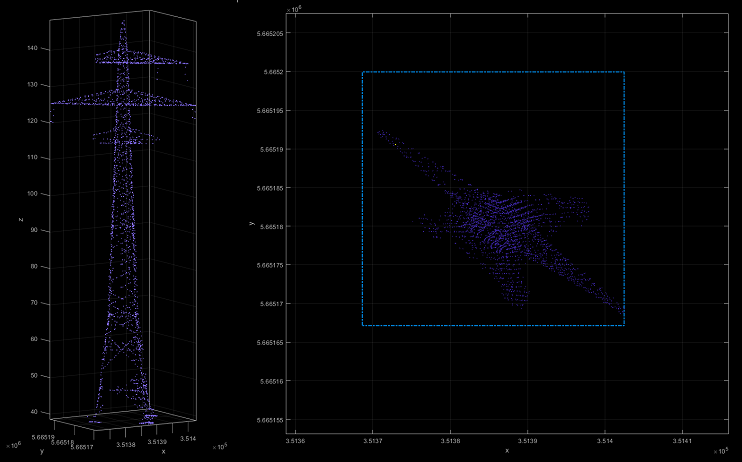 As clearly seen in Fig. 6, applied method is not able to find all tower points. Nevertheless, most of points of tower can correctly be detected. So extracted tower points are convenient to find bounding box of the tower.